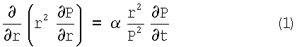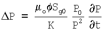 Таким образом получают классическую форму уравнения типа диффузии, но с членом 1/Р2, являющимся коэффициентом накопления, который происходит из сжимаемого характера газа.