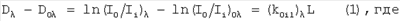 (I0) – интенсивность входного излучения (при отсутствии кюветы) на длине волны ;