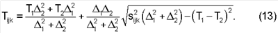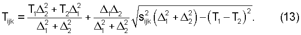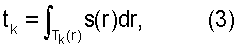 Если задано таким образом, что является истинным значением величины, обратной скорости волны, и использовано уравнение (4), то может быть получена следующая зависимость между величиной, обратной скорости волны, и временем пробега, связанная со значениями весовых коэффициентов в каждой узловой точке сетки: