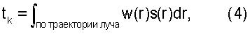 где – значения весовых коэффициентов в каждой узловой точке сетки, вычисленные посредством уравнения (2). Учитывая все лучи, скорректированная величина, обратная скорости волны, для каждой узловой точки сетки может быть выражена следующим образом: