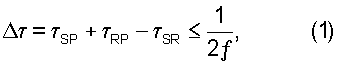 где – время пробега волны от источника (S) до рассматриваемой точки (P), – время пробега волны от приемника (R) до рассматриваемой точки (P), – кратчайшее время пробега волны от источника (S) до приемника (R), а – частота акустических волн (1/ – период).
