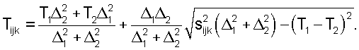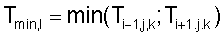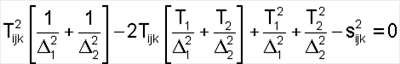 Когда неизвестны две соседние точки в двух направлениях, то уравнение эйконала дает только одно минимальное время пробега волны. Именуя этот минимум как T, а соответствующее расстояние между узлами сетки как , решение является тривиальным и дает следующий результат: