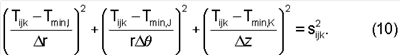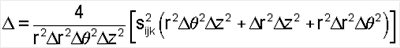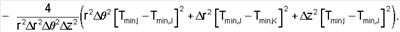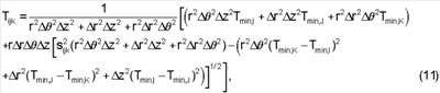 В плоскости (r, ) вычисляемая точка имеет более двух соседних точек. Если точка имеет положение (0, j, k) (j может принимать любое значение), то соседними точками являются m точек с координатами (1, j, k), где j {1..m}. Соответственно, определяют, какая именно точка имеет наименьшее значение времени вступления, и наименьшее значение времени вступления используют для решения приближения уравнения эйконала. Поэтому в данном случае приближение уравнения эйконала имеет только два члена.