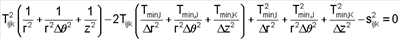 Если T1 – минимальное время пробега в вертикальном направлении, а T2 – соседняя точка в плоскости (r, ) с минимальным временем пробега, то 1 равно z, а 2 равно r. Следовательно, приближение уравнения эйконала записывается в следующем виде: