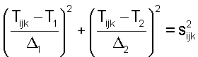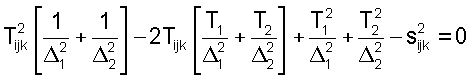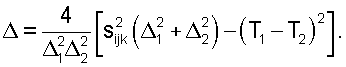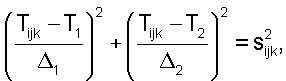 Когда неизвестны две соседние точки в одном направлении, имеется только два минимума, возникающие в приближении уравнения эйконала. Эти два минимума обозначают как T1 и T2, а соответствующие расстояния между узлами сетки (расстояние между узлами сетки в том направлении, в котором уже была вычислена, по меньшей мере, одна соседняя точка) как 1 и 2. Таким образом, приближение уравнения эйконала имеет следующий вид: