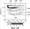 На Фиг.3 показан пример френелевского объема головных волн, отображенных как значения весовых коэффициентов с использованием весовой функции из уравнения (2). На фигуре показано множество зон (206, 208 и 210) Френеля, характеризующих наличие множества слоев (212, 214, 216, 218) в пласте. Аналогичным образом, на Фиг.3Б показаны траектории лучей первого вступления к множеству приемников при одном положении источника для четырехслойного пласта. На Фиг.3Б ясно видны преломленные волны от второго (214), третьего (216) и четвертого (218) слоев.