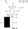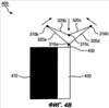 Мобильный коммуникационный терминал 400 на фиг.4А включает в себя основной блок 410, антенну 300, корпус 420, предназначенный для размещения антенны 300, блок 430 подачи сигнала. Блок 430 подачи сигнала может быть выполнен с возможностью подачи сигнала на монопольное или дипольное устройство. Блок 430 подачи сигнала включает в себя фидерную линию и предназначен для передачи электрической энергии на первый излучательный элемент и четвертый излучательный элемент посредством фидерной линии.