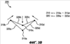 На фиг.3В третий элемент 310с крепления передвигается к первому элементу 310а крепления, после чего второй элемент 310b крепления поворачивается по часовой стрелке, четвертый элемент 310d крепления поворачивается против часовой стрелки и антенна складывается, однако процесс не ограничивается приведенным описанием. Так, второй элемент 310b крепления передвигается к четвертому элементу 310d крепления, далее третий элемент 310с крепления передвигается к первому элементу 310а крепления в направлении против часовой стрелки, и антенна 300 при этом складывается. Четвертый элемент 310d крепления передвигается ко второму элементу 310b крепления, далее третий элемент 310с крепления передвигается к первому элементу 310а крепления в направлении по часовой стрелке, и антенна 300 при этом складывается.