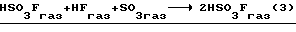 (57) Реферат: Изобретение относится к способам получения фтористых соединений посредством разложения их кислотами и может найти применение в производстве фтористого водорода и ангидрита. Способ получения фтористого водорода и ангидрита включает разложение плавикового шпата фторсульфоновой кислотой на фторсульфонат кальция и фтористый водород с последующим разложением фторсульфоната кальция. При этом процесс разложения плавикового шпата проводят газофазной фторсульфоновой кислотой, а разложение фторсульфоната кальция – парами воды в интервале температур 165,5 – 260oC, причем фтористый водород, образующийся в процессе разложения плавикового шпата, направляют на дробную конденсацию и очистку, а газообразную фторсульфоновую кислоту, полученную при разложении фторсульфоната кальция, используют для разложения плавикового шпата. Использование данного изобретения позволяет снизить себестоимость выпускаемой продукции. Изобретение относится к технологии получения фтористых соединений, а именно к способам получения фтористых соединений посредством разложения их кислотами, и может найти применение в производстве фтористого водорода и ангидрита. Известны способы получения фтористого водорода путем разложения плавикового шпата серной кислотой в барабанных вращающихся печах [1. Заявка Франции N 2564449, опубл. 22.11.85, М.кл. C 01 B 7/00, 2. Патент Швейцарии N 659646, опубл.3.02.87, М.кл. C 01 B 7/00]. В процессе разложения появляется паста, содержащая серную кислоту и сульфат кальция, обладающий вяжущими свойствами. Это часто приводит к появлению настылей из сульфата кальция, затрудняющих подвод тепла, необходимого для осуществления эндотермичного процесса разложения плавикового шпата. Для уменьшения вероятности образования настылей часто прибегают к смешению серной кислоты и плавикового шпата при повышенной температуре в предреакторе, что усложняет технологическую схему процесса. Известен также способ получения фтористого водорода и фосфорной кислоты посредством обработки смеси фосфатов и фторсодержащих руд фторсульфоновой кислотой [3. Заявка Великобритании N 2069474, опубл. 21.08.81г., М.кл. C 01 B 7/00]. Этот способ, по нашему мнению, по своей технической сущности и достигаемому положительному эффекту является наиболее близким аналогом предлагаемого изобретения, вследствие чего он и принят нами за прототип. Способ заключается в том, что вышеприведенная смесь обрабатывается фторсульфоновой кислотой при нагревании до испарения фтористого водорода (tкип = +19,43oC), оксифторида фосфора (tкип = -39,4oC) и пятифтористого фосфора (tкип = -84,5oC). В конденсированной фазе остаются сульфат кальция и избыточная фторсульфоновая кислота (tкип = +165,5oC). После отделения фтористого водорода оксифторид фосфора и пятифтористый фосфор гидролизуют с получением фосфорной кислоты и фтористого водорода. Фтористый водород, реагируя с серным ангидридом, образует фторсульфоновую кислоту, направляемую на разложение фосфатов и фторидов. При отсутствии фосфатов фторсульфоновая кислота, реагируя с фторидом кальция, образует фторсульфонат кальция и фтористый водород. После удаления фтористого водорода при нагревании остаток (фторсульфонат кальция) обрабатывают серной кислотой, в результате чего получается сульфат кальция и свободная фторсульфоновая кислота, которая может быть и