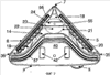 На фиг.2 и 4 показано всасывающее устройство, вид сверху. Подошва 11 всасывающего устройства содержит несколько всасывающих каналов: канал 19, практически параллельный бортику 6 всасывающего устройства, канал 20, практически параллельный бортику 5 всасывающего устройства. Эти каналы соединяются друг с другом в центральной зоне 21 всасывающего устройства. Каналы 19 и 20 содержат передние отверстия, то есть отверстия в вертикальных бортиках подошвы, соответственно 36 и 35, обеспечивающие боковое всасывание практически параллельно очищаемой поверхности.