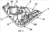 Кроме того, в представленном варианте выполнения всасывающее устройство содержит подъемные щетки, которые приводятся в действие при помощи поворотной педали 8. Нажатие на эту педаль 8 производится на уровне крышки 12 всасывающего устройства. В представленном примере эта крышка выполняет только эстетические и защитные функции.