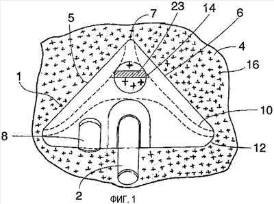Вторая зона 28 с нитесборной тканью может быть выполнена на бортике канала 22 симметрично нитесборной зоне 24.