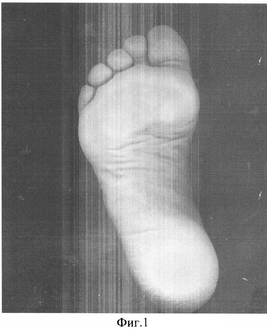 2. Производится сканирование подошвы стоп. Снимки стоп показаны на фиг.1.