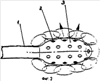 Наружная поверхность эллипсоида 3 содержит сквозные отверстия 2 одинакового диаметра, равномерно распределенные по поверхности под равными телесными углами. Общая площадь ирригационных отверстий лежит в интервале от 40% до 50% от площади внешней поверхности эллипсоида.