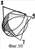 Фиг.10 – схема взаимодействия эндовитреального инструмента при последовательном использовании канюль 7, 8, 9 на левом глазу.