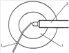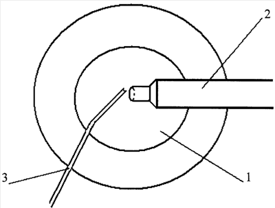 На чертеже изображена схема способа факоэмульсификации, где 1 – хрусталик, 2 – факоигла, 3 – шпатель.