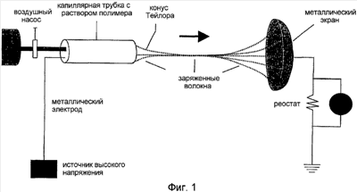 Электропрядение, обычно называемое электростатическим вытягиванием нити, представляет собой процесс изготовления волокон, диаметры которых находятся в пределах 100 нм. Данный процесс состоит из приложения высокого напряжения к полимерному раствору или расплаву для получения полимерной струи. По мере прохождения струи по воздуху она удлиняется под действием отталкивающей электростатической силы с образованием нановолокон. Данный процесс описан в литературе с 1930 г. Ряд полимеров как натурального, так и синтетического происхождения, имеющих оптимальные характеристики, подвергали процессу электропрядения в соответствующих условиях для получения нановолокон (см. Reneker et al., Nanotechnology, 1996, 7, 216). Были предложены различные варианты применения указанных электропряденых волокон, такие как воздушные фильтры, молекулярные композиты, сосудистые трансплантаты и перевязочный материал.