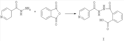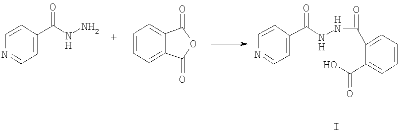 Методика получения изоникотиноилгидразида фталевой кислоты. Раствор 1,48 г (0,01 моль) ангидрида фталевой кислоты в 50 мл этилацетата и раствор 1,37 г (0,01 моль) гидразида изоникотиновой кислоты в 20 мл воды сливают, интенсивно перемешивая, при температуре 20°С. Через 3 ч выпавший осадок отфильтровывают и кристаллизуют из этанола, выход 2,50 г (88%). Тпл.=220-222°С (р).