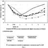 Вторая серия опытов по изучению влияния заявляемого соединения на гипогликемическую активность инсулина проводилась на животных с дексаметазоновой моделью инсулинорезистентности [Селятицкая В.Г., Кузьминова О.И., Одинцов С.В. Динамика формирования инсулинорезистентности у экспериментальных животных при длительном введении глюкокортикоидных гормонов. Бюлл. экспер. биол. мед., 2002, Т.133, №4, С.394-396]. Исследования проведены на белых нелинейных крысах самцах массой 200-230 г, которым одновременно с введением соединения I и эталонов сравнения в указанных дозах (табл.2) в течение 15 суток ежедневно в/б инъецировали дексаметазона фосфат (KRKA) из расчета 100 мкг/кг. 15-суточное введение дексаметазона крысам контрольной серии повышает уровень тощаковой гликемии (табл.2). На этом фоне сахароснижающий эффект инсулина через 30 мин после введения в дозе 1 ЕД/кг ослабевает на 28,4%, через 1 час – на 46,5%, спустя 2 часа – на 44,4%, по истечении 3 часов – на 18,8%. 15-суточное введение заявляемого соединения восстанавливает чувствительность к экзогенному инсулину в той же степени, что и препараты сравнения (фиг.2).