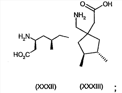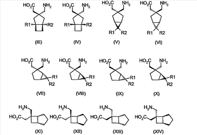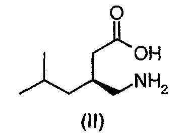 Второй альфа-2-дельта лиганд, прегабалин (II), (S)-(+)-4-амино-3-(2-метилпропил)бутановая кислота, был описан в европейской патентной заявке номер EP641330 для противосудорожной терапии, применяемой при лечении эпилепсии, и в EP0934061 для лечения боли.