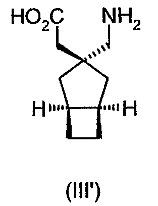 Более предпочтительно, альфа-2-дельта лиганд представляет собой габапентин (I), прегабалин (II) или (1 , 3 , 5 )(3-амино-метил-бицикло[3.2.0]гепт-3-ил)уксусную кислоту (III’)