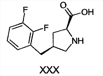 11. Применение по п.7, где альфа-2-дельта лигандом является 4-(3-фторбензил)пирролидин-2-карбоновая кислота (XXXV)
