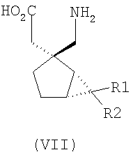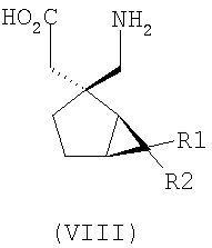 Циклические альфа-2-дельта лиганды, которые могут использоваться по настоящему изобретению, проиллюстрированы следующей формулой (I):