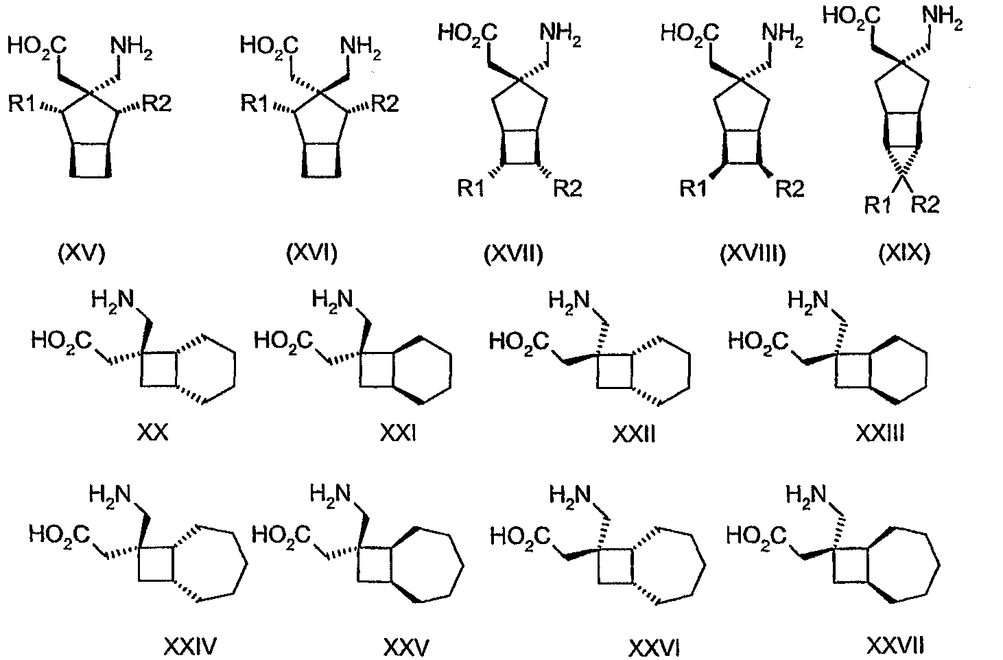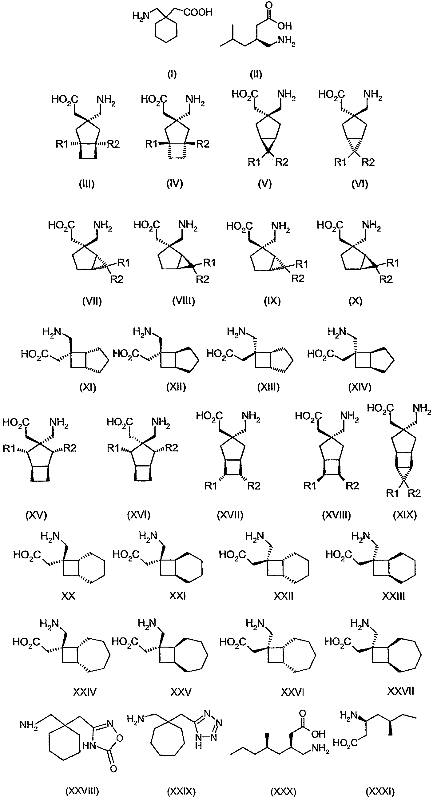 Было описано, что альфа-2-дельта лиганды имеют большое количество показаний. Самый известный альфа-2-дельта лиганд, габапентин (I), известный как Neurontin®, 1-(аминометил)-циклогексилуксусная кислота, впервые был описан в патентной литературе в семействе патентов, к которым относится патент США № 4024175.