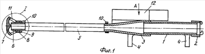 Известные [1, 2] пожарные стволы имеют низкую надежность вследствие выпадания каната или пружинной проволоки из компактной части струи и сложны в изготовлении и эксплуатации. Переносной импульсный огнетушитель [3] сложен в изготовлении, в нем не предусмотрено автоматическое изменение зазора в кольцевом сопле.
