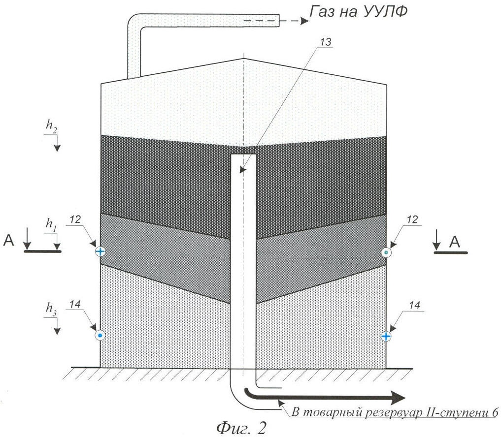 Резервуар-отстойник первой ступени 5 и товарный резервуар второй ступени 6 одновременно выполняют несколько функций.
