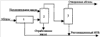 Пример 2 (предлагаемый способ, см. чертеж). Абгазы процесса окисления ИПБ в количестве 10000 нм3/ч с концентрацией ИПБ 10 г/нм3, температурой 40°С и давлении 4 атм поступают в холодильник-сепаратор, где за счет снижения температуры до 5°С происходит образование и отделение капельной влаги, в результате чего концентрация ИПБ в абгазах падает до 4 г/нм3. После этого абгазы подаются в абсорбер, который орошается полиалкилбензолами в количестве 1 т/ч, в результате чего концентрация органических примесей в абгазах падает до 0.5 г/нм3. На третьей стадии абгазы подаются на доочистку в периодический адсорбер, заполненный композицией активированного угля (80%), окиси алюминия (10%) и адсорбента типа Цеокар (10%) в количестве 3000 кг, где происходит снижение концентрации ИПБ до 10 мг/нм3. Период насыщения адсорбента равен 120 часов, расход пара на регенерацию составит 6 тонн.