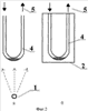 На фиг.2 приведено схематичное изображение устройства для проведения процессов сорбции и десорбции при облучении (а) и в отсутствие облучения (б) в динамических условиях опыта, например, для создания «концентраторов», используемых в хроматографии. Цифрами обозначены: 1 – источник излучения; 2 – черная непроницаемая для излучения защитная оболочка; 4 – стеклянный контейнер (адсорбер) со слоем исследуемого материала – сорбента; 5 – адсорбат в виде пара в смеси с воздухом, подаваемый в адсорбер.