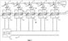 Из фиг.2 и 3 видно, что рабочие ролики установлены на валах 18, а в блоках прокатки имеются звенья промежуточного привода, обеспечивающие механическое взаимодействие валов роликов с входным валом 20. Входные валы параллельны друг другу и установлены на первой стороне «А» линии прокатки. Звенья промежуточного привода содержат зубчатые колеса 22 на валу ролика, сцепленные с колесами 24 на валу 26, при этом один из валов 26 посредством конической шестерни 28 соединен с валом 30. Валы 30 приводят в движение приводы 32, сцепленные с приводом 34 на входном валу 20.