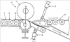 Перед прохождением конца 10 полосы стрелку 5 переставляют вниз, и она прижимает полосу 9 к направляющему столу 6, причем она освобождает путь в конечный направляющий канал 2 (фиг.2).