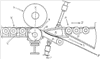 – фиг.5: стрелку в верхнем положении и тянущее устройство в наклонной плоскости y-y; выдвигающийся конец полосы прикладывают с помощью стрелки к верхнему тянущему ролику и подготавливают, таким образом, путь для головки следующей полосы в конечный направляющий канал;