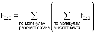 Основываясь на этом, можно определить силу притяжения, возникающую между поверхностями рабочего органа и микрообъектом в целом. Она равна сумме всех парных взаимодействий молекул исследуемых поверхностей: