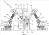 В предпочтительном варианте осуществления устройство 1 выполнено с возможностью одновременного осуществления изготовления двух шин 2. С этой целью, как показано на фиг.1 и 2, устройство 1 выполнено с первым и вторым основными барабанами 15, опирающимися соответственно на первый и второй исполнительные узлы 21а, 21b и подлежащими последовательному введению во взаимодействие с устройствами, предназначенными для наложения каркасной конструкции 3, элементом 18, предназначенным для транспортирования брекерной конструкции 4, устройством, предназначенным для наложения протекторного браслета 5, и устройством, предназначенным для наложения боковин 6.