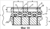 на фиг.10 – печатная форма с сеткой переплетения, расположенной между слоями, первый слой формы имеет подслой;