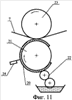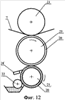 на фиг.11, 12 показаны схемы, поясняющие возможные варианты осуществления ротационного печатного процесса с подачей краски со стороны рабочей поверхности формы.