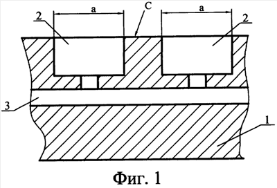 На фиг.1 схематично изображена печатная форма с сообщенными печатными элементами, поперечный разрез;