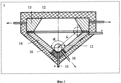 С выхода счетчика 25 импульсов сигнал, пропорциональный времени движения t электропроводного шарика, поступает на первый и второй входы умножителя 26, с выхода которого сигнал, пропорциональный величине t2, поступает на первый вход делителя 27, на второй вход которого с выхода задатчика 28 поступает сигнал, пропорциональный величине (фиг.2), где L – расстояние между двумя исходными положениями электроконтактов, – угол образующей полого конуса, g – ускорение свободного падения.