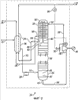 Из зоны впуска 40 пар сингаза проходит вверх через зону контакта 58 в контакте с жидкостью, текущей вниз через зону контакта 58, с абсорбированием азота и обогащением водородосодержания пара. На верхнем конце зоны 58 контакта пар поступает в паровой стакан 60 и идет в зону 62 впуска пара на верхнем конце зоны теплообмена 32. Пар проходит участок труб через зону 32 теплообмена с частичной конденсацией потоком сбросовой жидкости, дополнительно обогащая пар низкокипящими компонентами. Пар и конденсат выходят из зоны 32 теплообмена и разделяются в зоне ударной сепарации 64. Пар выходит из колонны 20 в виде потока очищенного сингаза 24, выходя через выпуск сингаза 66. Конденсат собирают в герметичном отстойнике 68 жидкости ниже зоны 64 ударной сепарации и в сообщении с зоной 58 контакта. Конденсат перетекает из герметичного отстойника 68 в поток ниже через зону 58 контакта в зону 42 удерживания жидкости, как указано ранее.