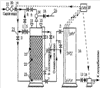 1. Станция очистки подземных и сточных вод, содержащая напорный фильтр с тяжелой загрузкой, накопительную емкость и подающий трубопровод, отличающаяся тем, что подающий трубопровод является одновременно восходящей ветвью, обеспечивающей разрыв струи в накопительной емкости, эжектор с калиброванным отверстием для аэрации воды и обратным клапаном для забора воздуха, установлен на фильтр, между верхним и нижним фланцами которого установлен пьезометр для контроля полного наполнения фильтра исходной водой, электромагнитный клапан установлен на врезке станции в действующей сети, для регулирования работы которого система автоматического управления подключена к электродам накопительной емкости, регулятор давления для обеспечения постоянной скорости фильтрации установлен перед электромагнитным клапаном.