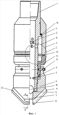 На кольцевом упорном выступе 4 расположен элемент 16, регулирующий раскрытость кольцевой щели 15.