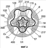 В двигателе, показанном на Фиг.1, механически связанные роторы 5, 15 и механически связанные контрроторы 7 и 17 одновременно вращаются вокруг оси Z в противоположных направлениях с одинаковыми относительными скоростями (5, 15)=-1 и (7, 17)=1. Относительная угловая скорость re линии центров О6-О-О16 роторов 6 вокруг оси Z относительно скорости роторов 5, 7 задана как re=5, тогда как относительная угловая скорость s(6,16) роторов-сателлитов 6, 16 вокруг их осей О6, О16 задана как s(6,16)=0,2.