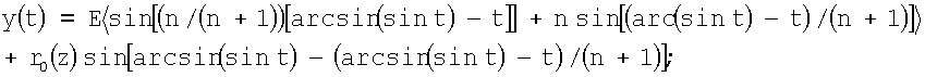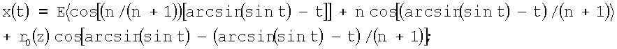 Если r0 выбран монотонно изменяющимся по оси z (оси, перпендикулярной плоскости чертежа на Фиг.1), получаем для профиля Dm параметрические уравнения (в зависимости от параметра t):