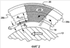 Как показано на фиг.2, вторые щетинки 24b, так же как и первые щетинки 24а, показанные на фиг.1, касательно наклонены между их соответствующими монтажными пластинами под углом наклона, составляющим около 45-60 градусов к касательной. Направление вращения поверхности 12 вала показано на фиг.2 против часовой стрелки, и щетинки наклонены против этой поверхности так, что они могут отклоняться или изгибаться при случайном трении между ними радиально наружу.