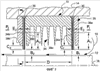 Двумя признаками конструкции описанных выше щеточных уплотнений, которые влияют и на характеристики уплотнения, и на устойчивость вала при трении, являются зазоры В1, 2 между щетинками и поверхностью 12 и плотность пакетов щетинок. Плотность пакета представлена количеством щетинок на единицу длины в кольцевом направлении по периметру каждого щеточного уплотнения.