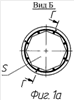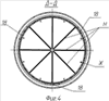 Фиг.2 (вид А на фиг.1) и фиг.3 (сечение Г-Г на фиг.1) подробно раскрывают содержание заявленного устройства, в котором подвижный шпангоут 6 фиксирует разрезное пружинное кольцо 5 выступами В и снабжен внутренним буртиком 9 с проходным сечением S в виде правильного многоугольника (вид Б на фиг.1), перекрытого крышкой мембраны 7, закрепленной на буртике 9 (например, винтами Ж) со стороны двигателя, мембрана 10 которой периферийной частью наружной поверхности П охватывает кольцо 11 с внутренней огранкой, идентичной многоугольнику буртика шпангоута. Внутренняя поверхность И мембраны, обращенная к двигателю, снабжена ЗС 12 и надрезами Н, выполненными в виде лучей, с началом в центре и заканчивающихся в углах многоугольника. Причем устройство вращения выполнено в виде роликов 13, установленных на блоке стабилизатора 14, лопасти 15 которого свернуты вокруг соплового блока 16 двигателя и размещены в расточке Р насадка 17. При этом между двигателем и опорной гайкой размещены распорные секции 18 (фиг.3 и 4), а разрезное пружинное кольцо установлено с опорой на задний торец Т насадка.