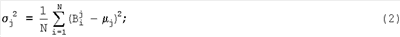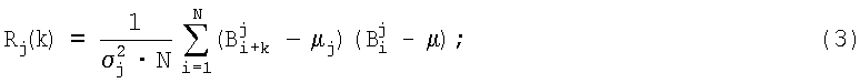 Процедура распознавания форм облачности сводится к определению статистических характеристик полей собственного излучения облачности в режиме реального времени и осуществляется следующим образом. Отсчеты, относящиеся к одному направлению, группируются в ряд с интервалами квантования i, i=1, 2, 3, …, N. Пусть – энергетическая яркость (ЭЯ), соответствующая i-му отсчету, где j – номер ряда (строки), иногда его называют реализацией, представляющей сечение облачности по азимутальному углу, j=1, 2, 3, …, М.